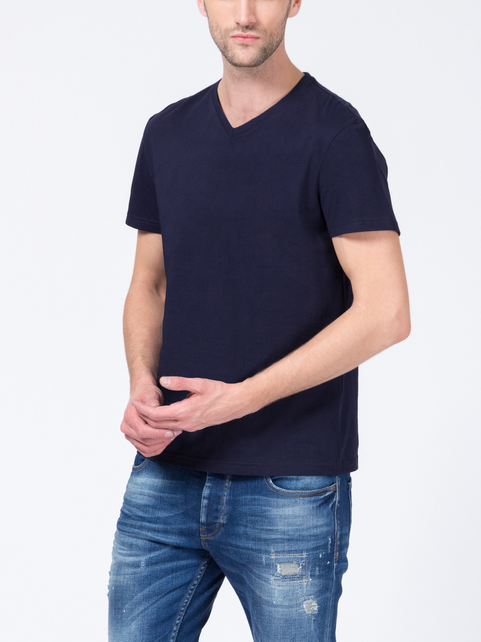 Футболка из хлопка, свободный силуэт, рукава короткие, V- образный вырез горловины