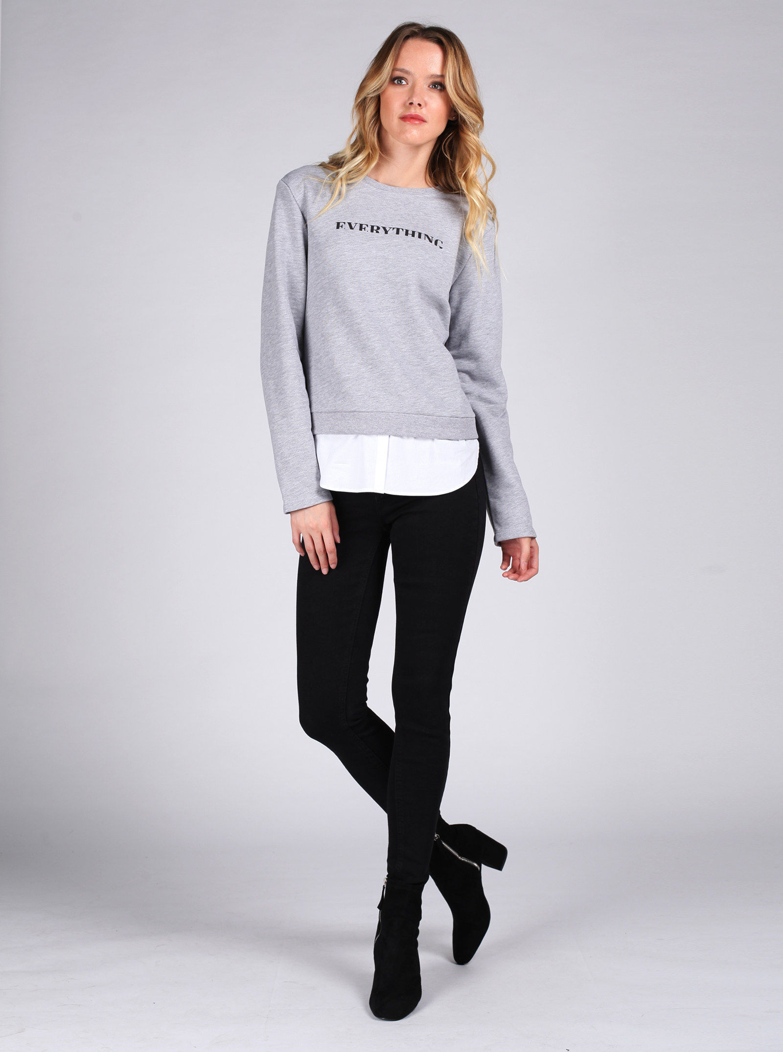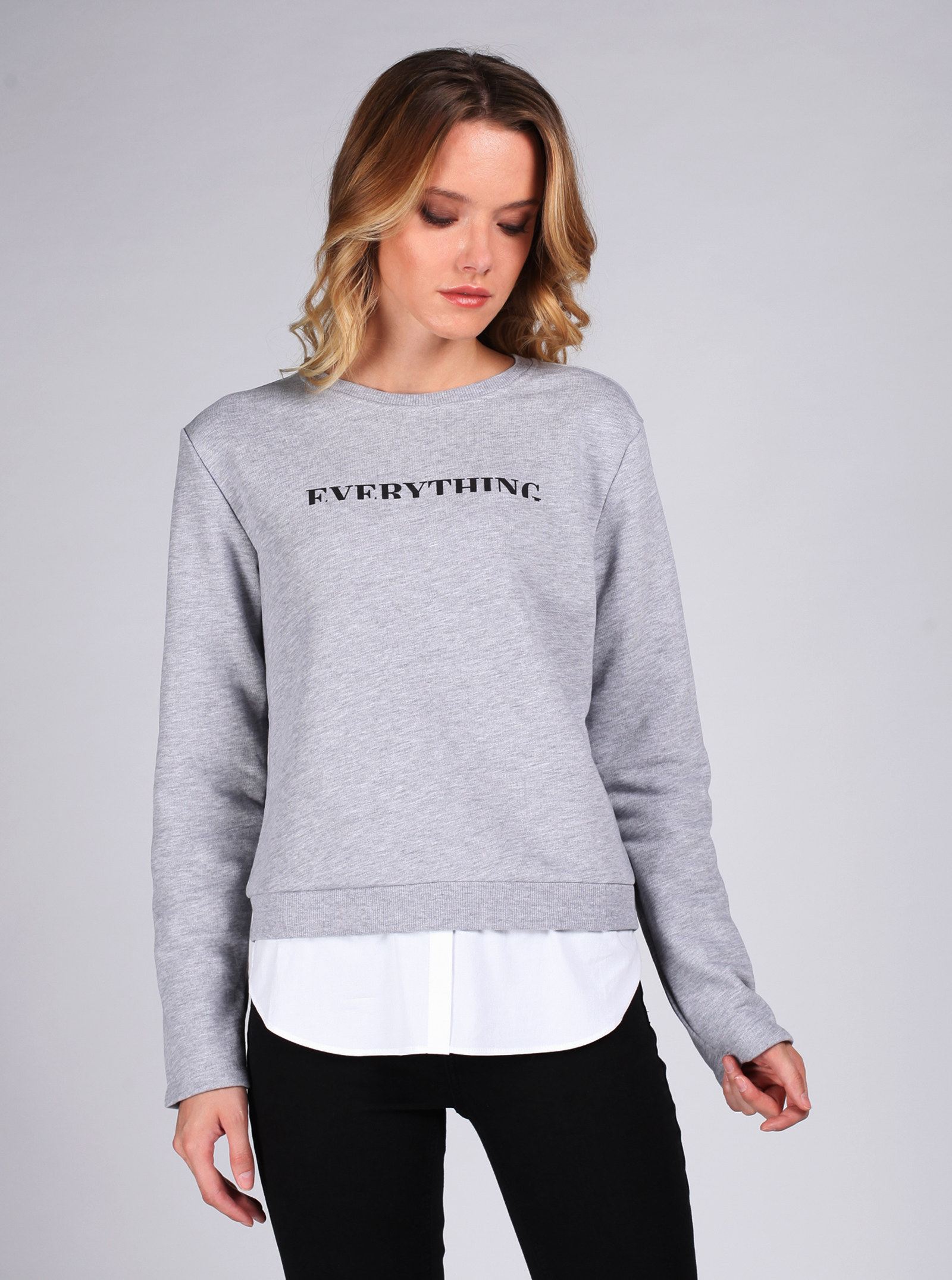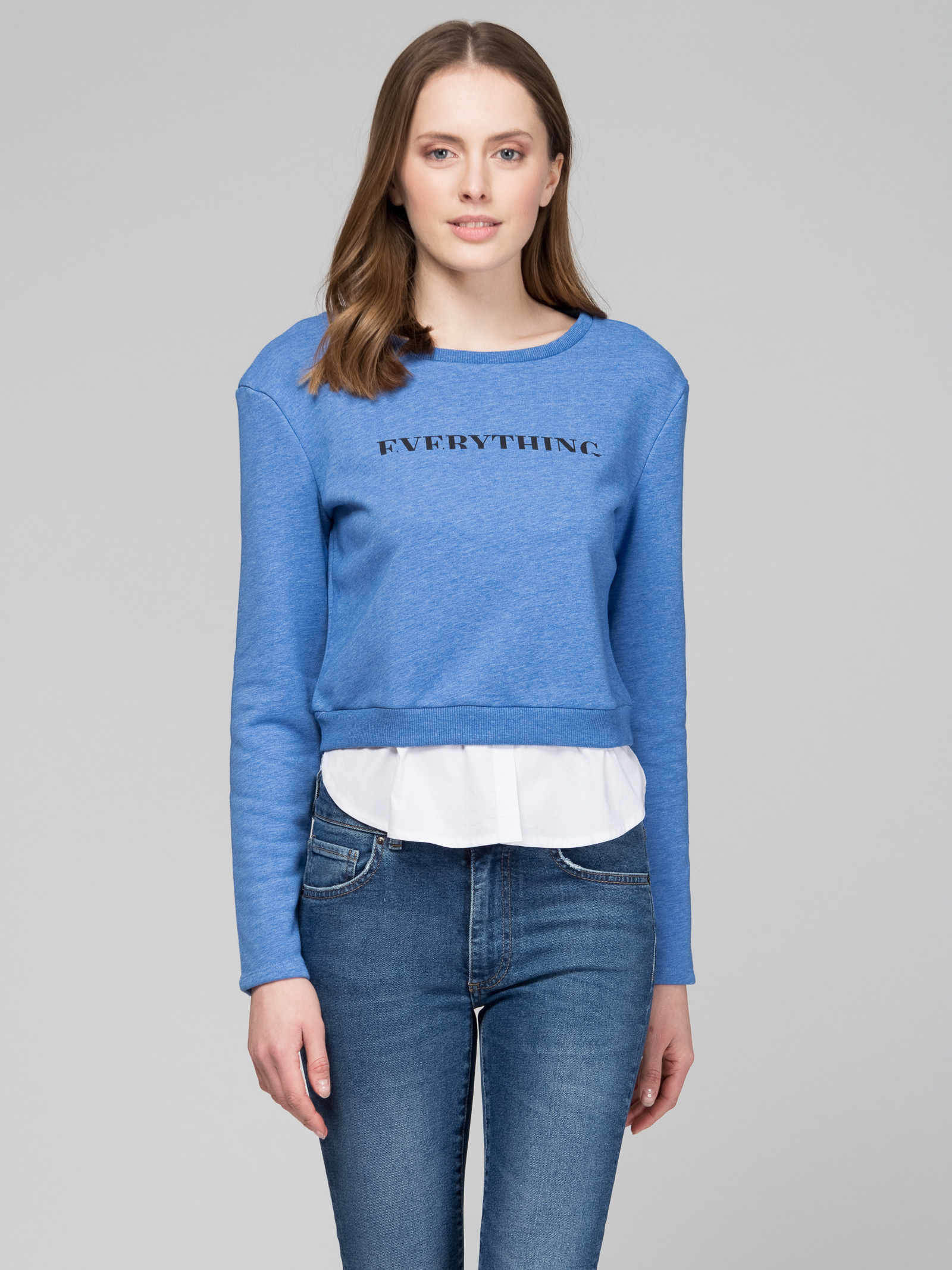 Толстовка из хлопкового футера с принтом и дополнительной тканью, длинный рукав, свободный силуэт, спущенная линия плеча