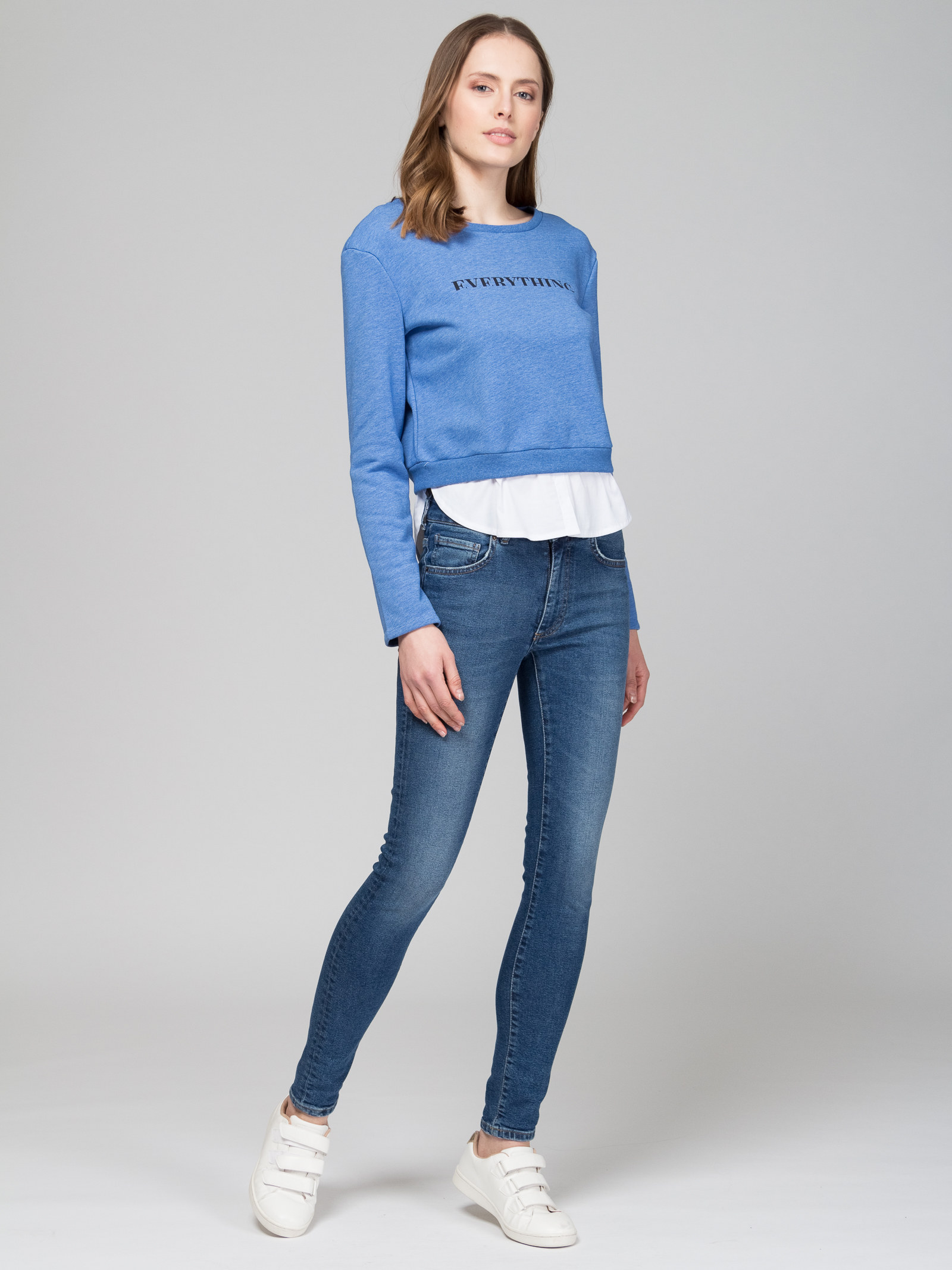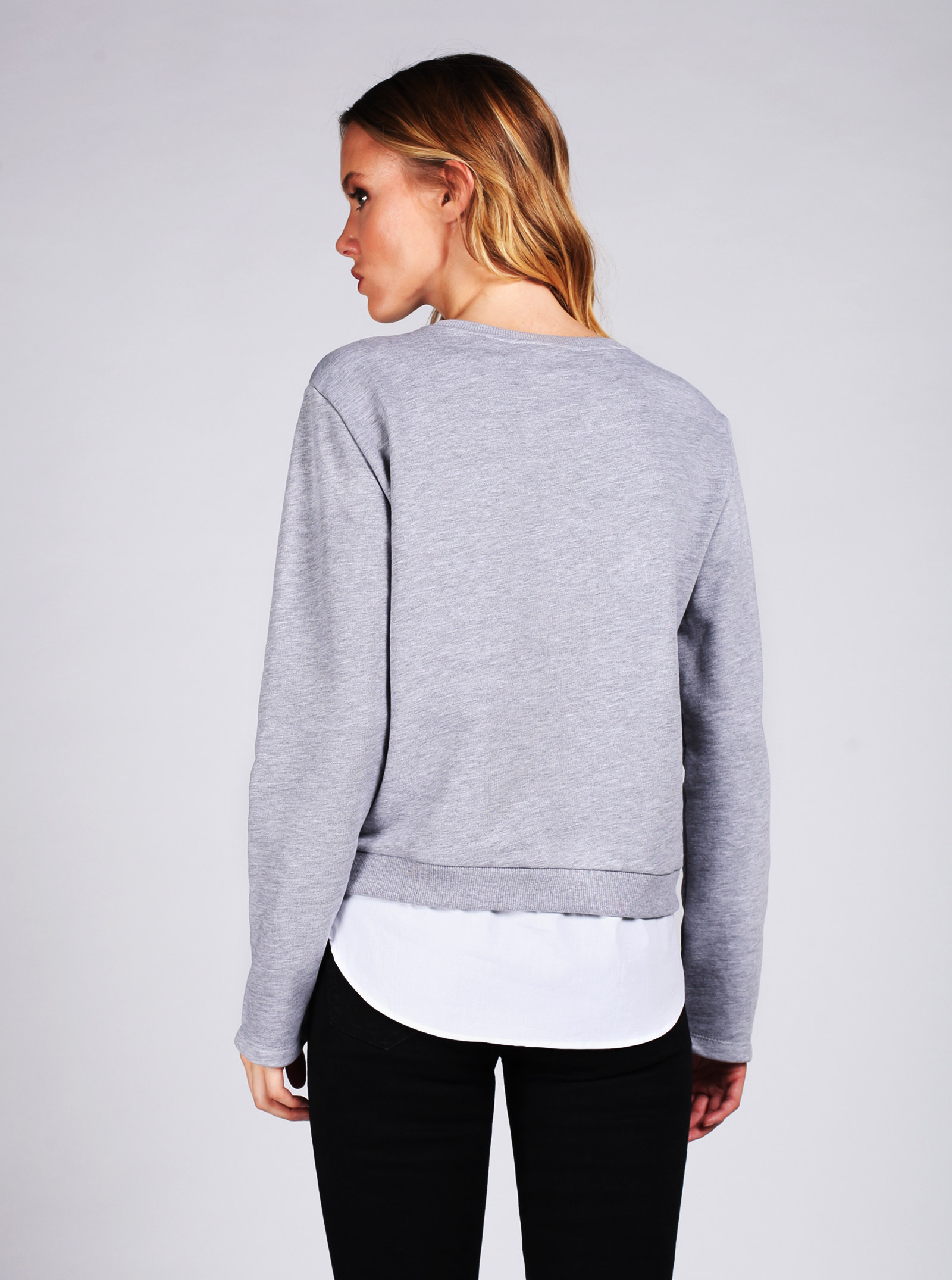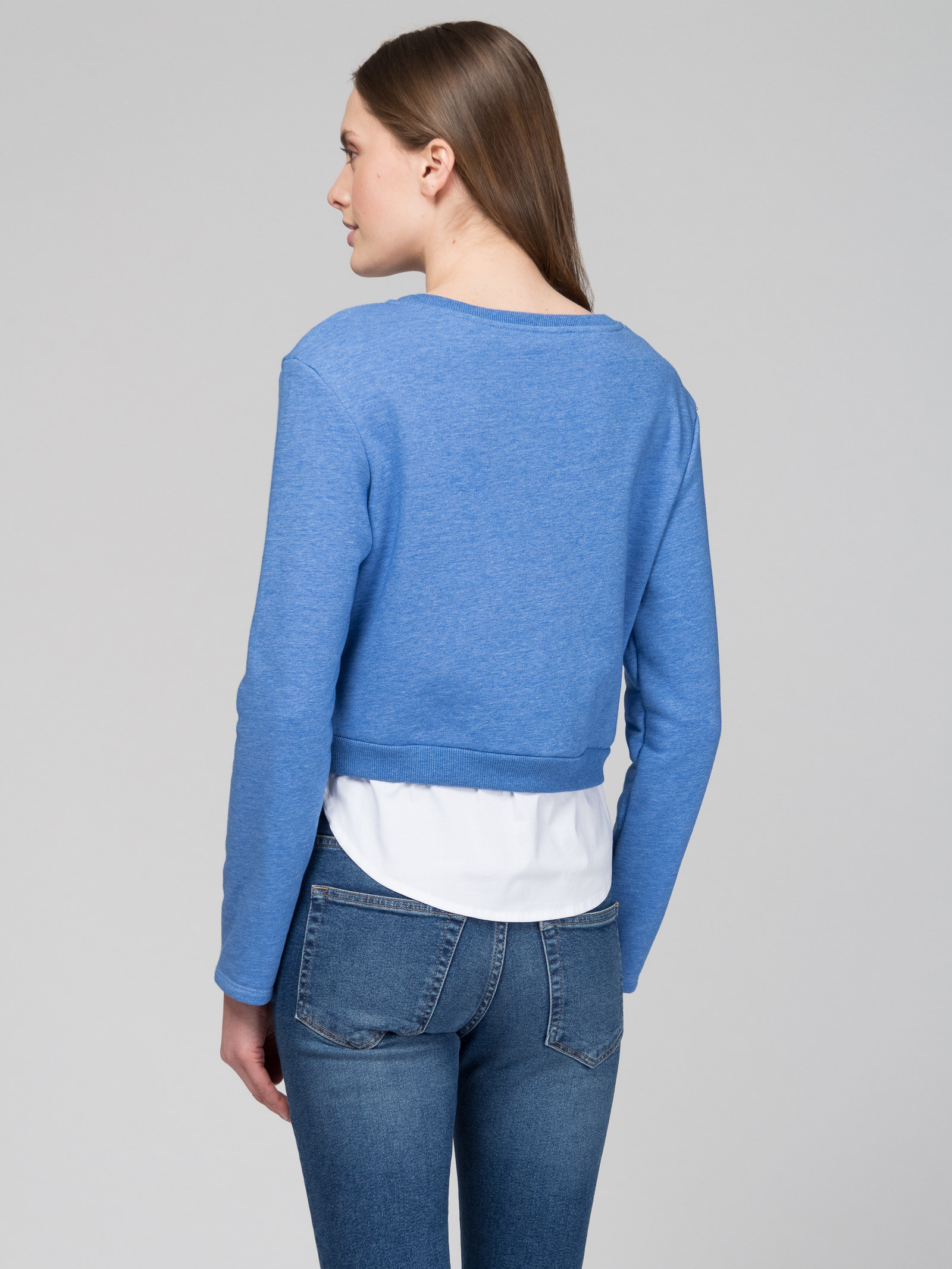 Толстовка из хлопкового футера с принтом и дополнительной тканью, длинный рукав, свободный силуэт, спущенная линия плеча
