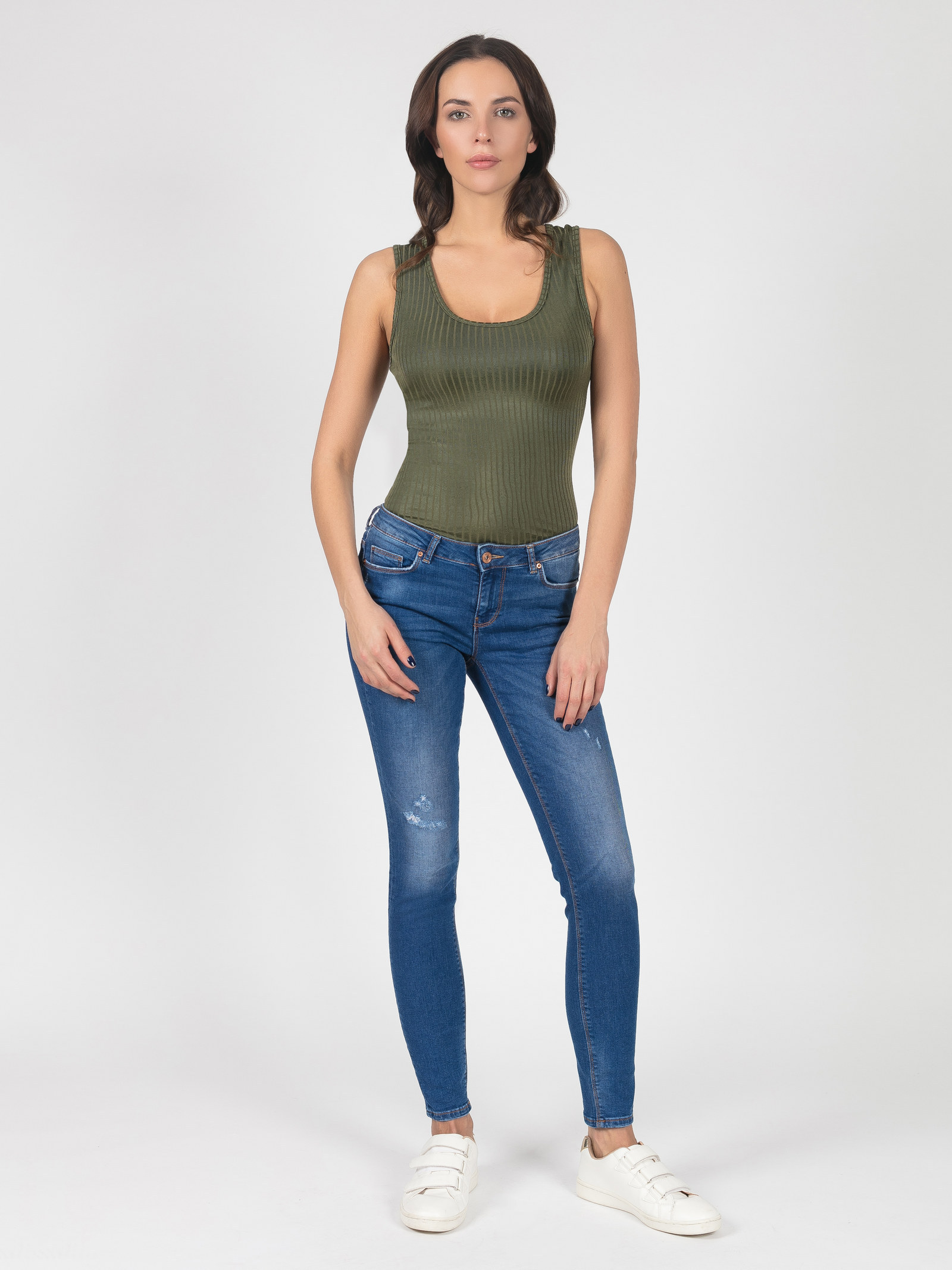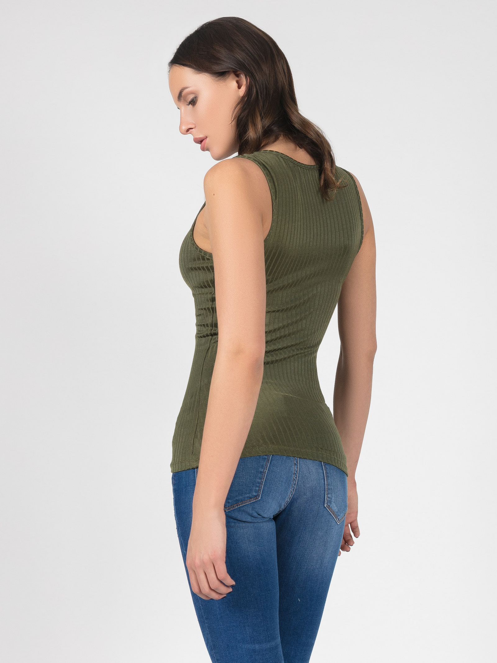 Майка из эластичной и фактурной ткани в рубчик с легким блеском, обтягивающий силуэт