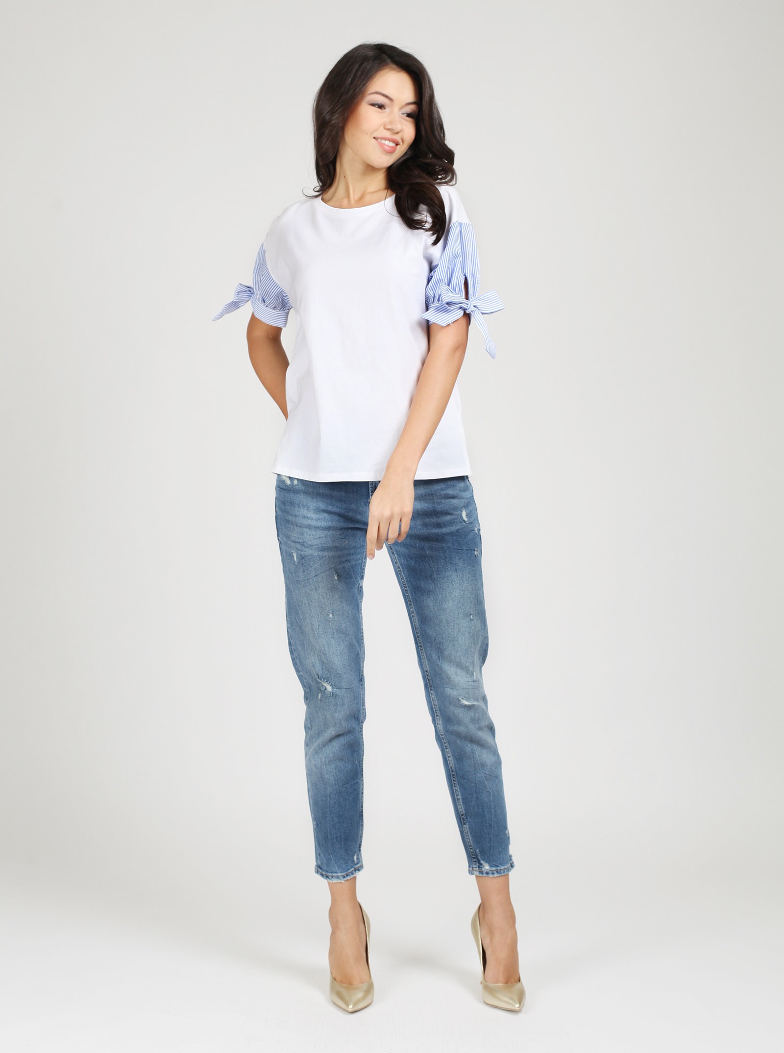 Футболка из хлопка, короткий рукав с закрепленным отворотом, спущенное плечо, свободный силуэт