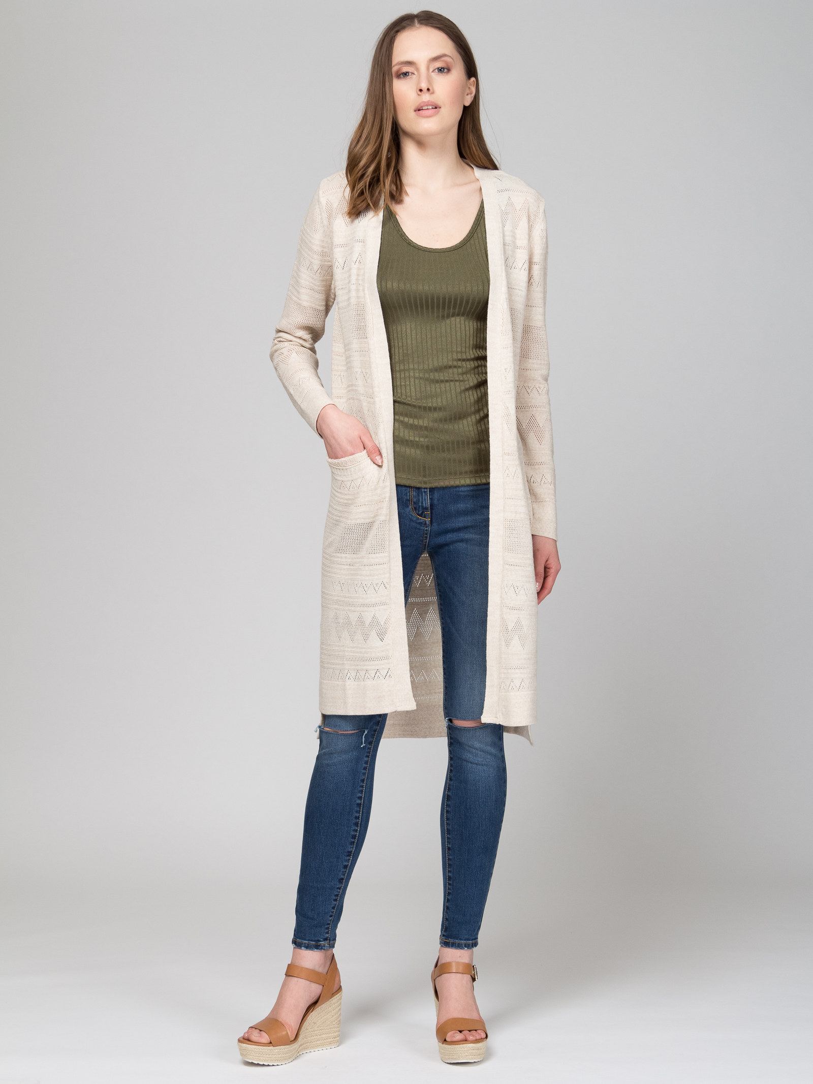 Вязаный кардиган без застежки, длинный рукав, свободный силуэт, с ажурным рисунком