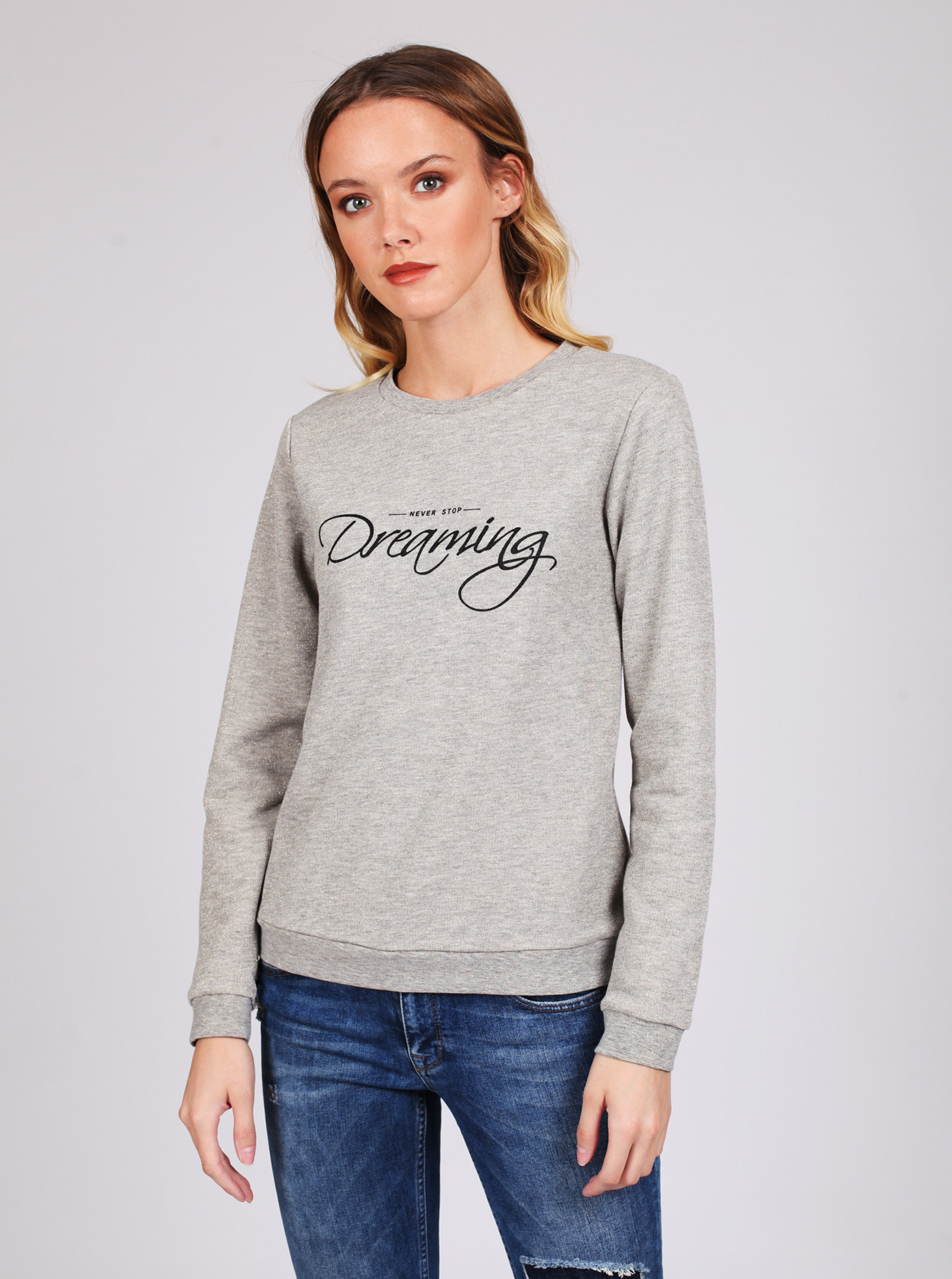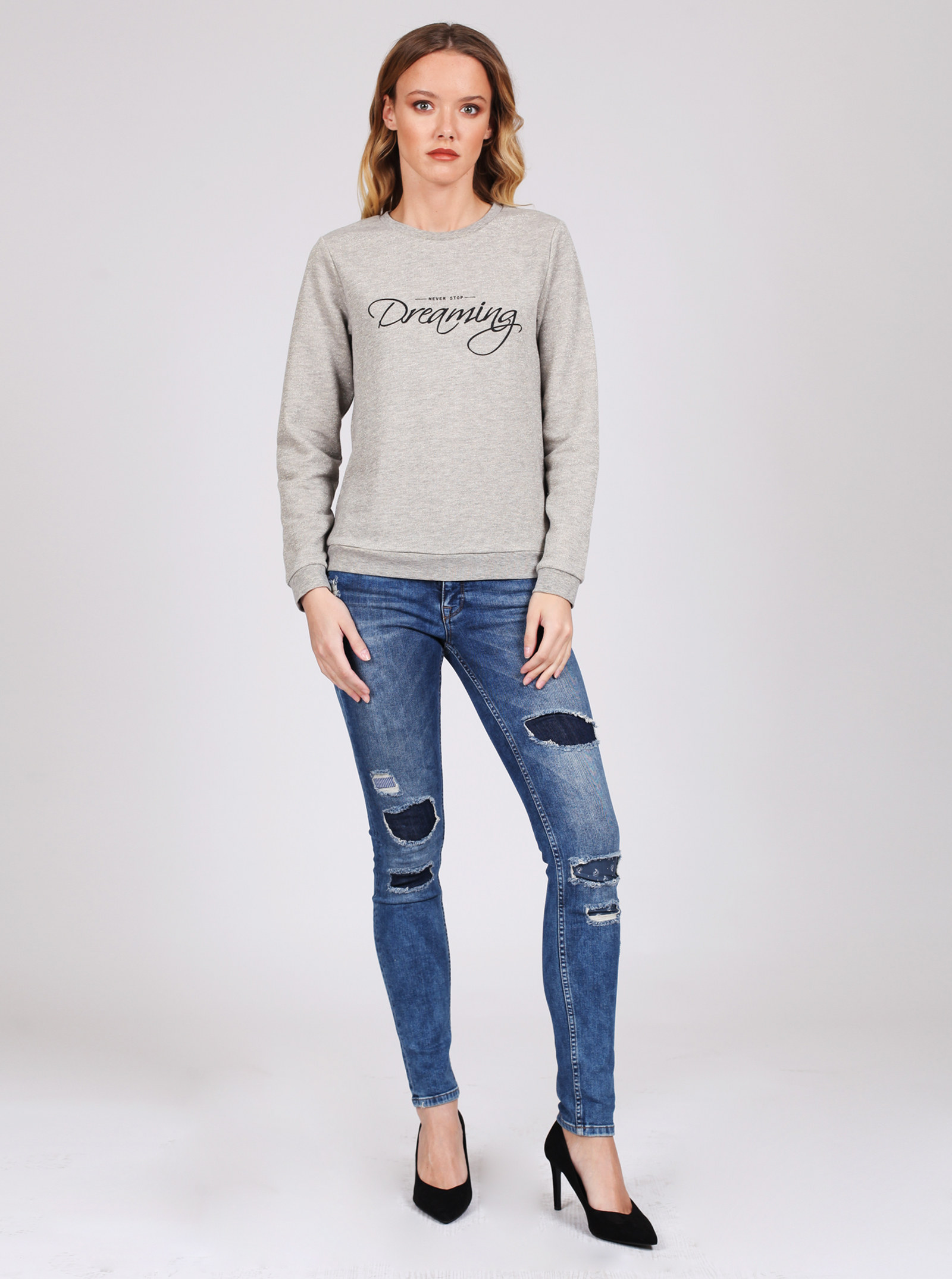 Толстовка из футера с люрексом и принтом, длинный рукав, свободный силуэт