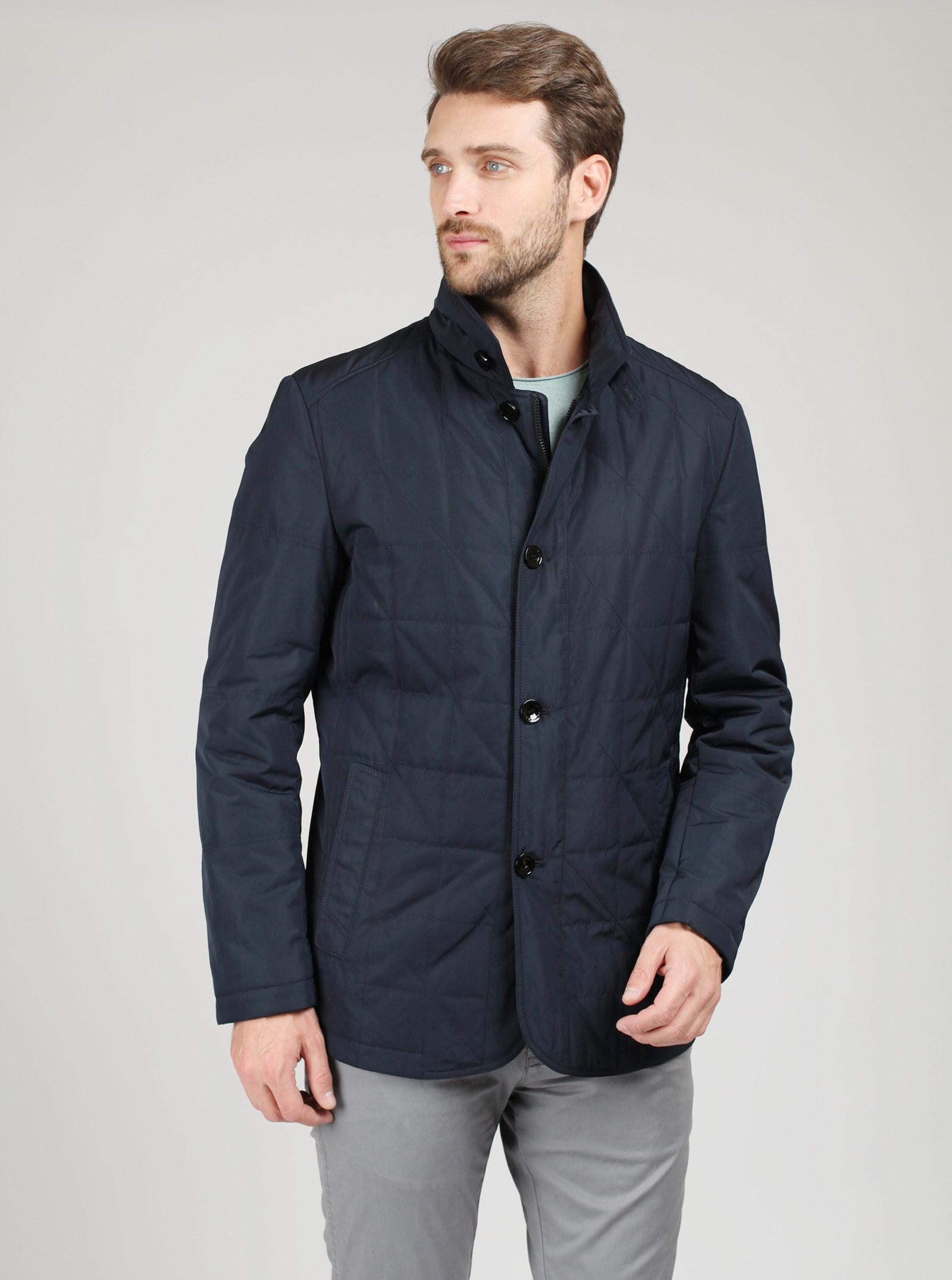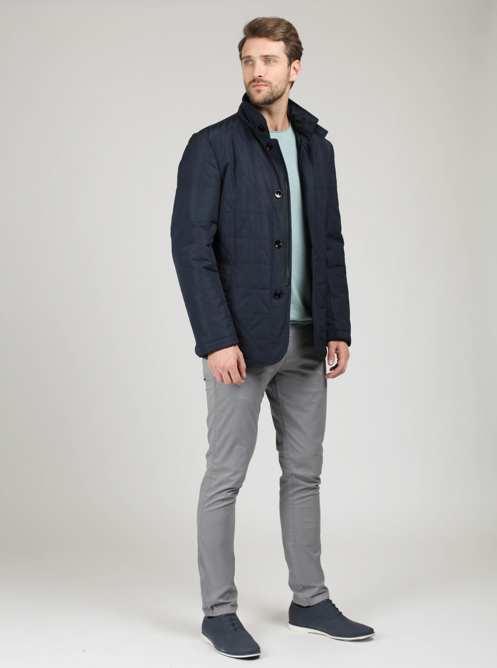 Куртка на тонком утеплителе полуприлегающего силуэта, с центральной застежкой на молнию внутри и на пуговицы по цельнокроеной планке. Изделие выполнено в "пиджачном"стиле, удобно носить его поверх костюма т к оно прикроет длину пиджака и, конечно, в любой другой ситуации оно дополнит образ. Внутренние и наружные карманы застегиваются на кнопки, также предусмотрена застежка на воротнике при помощи паты и пуговицы. В таком виде отложной воротник заменяет воротник стойку.