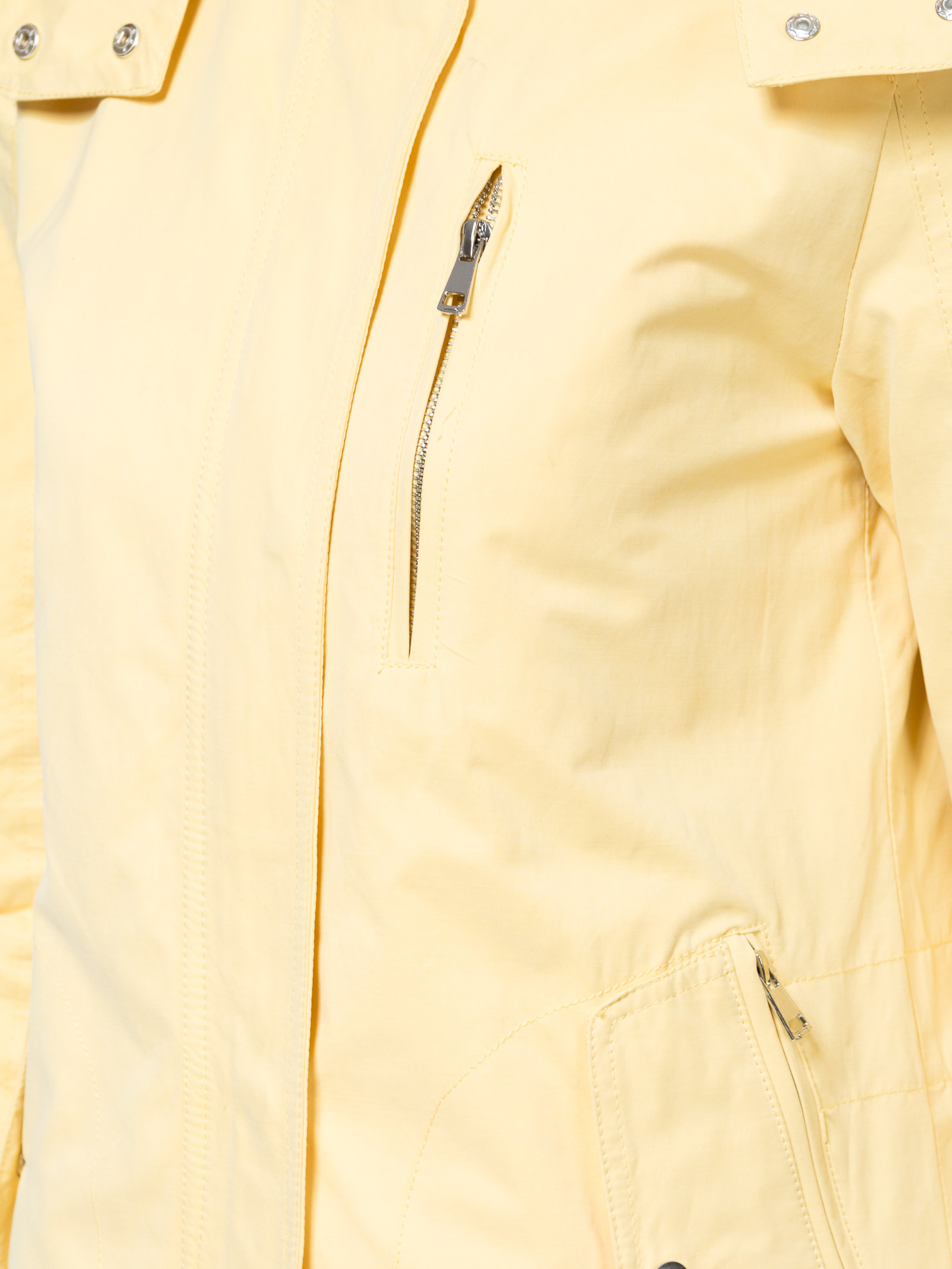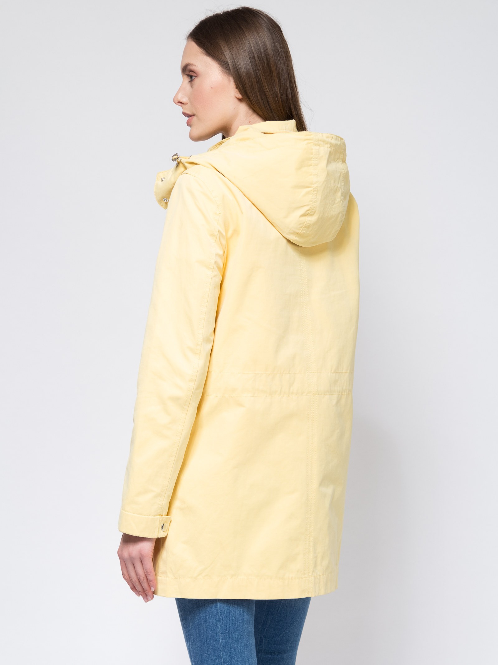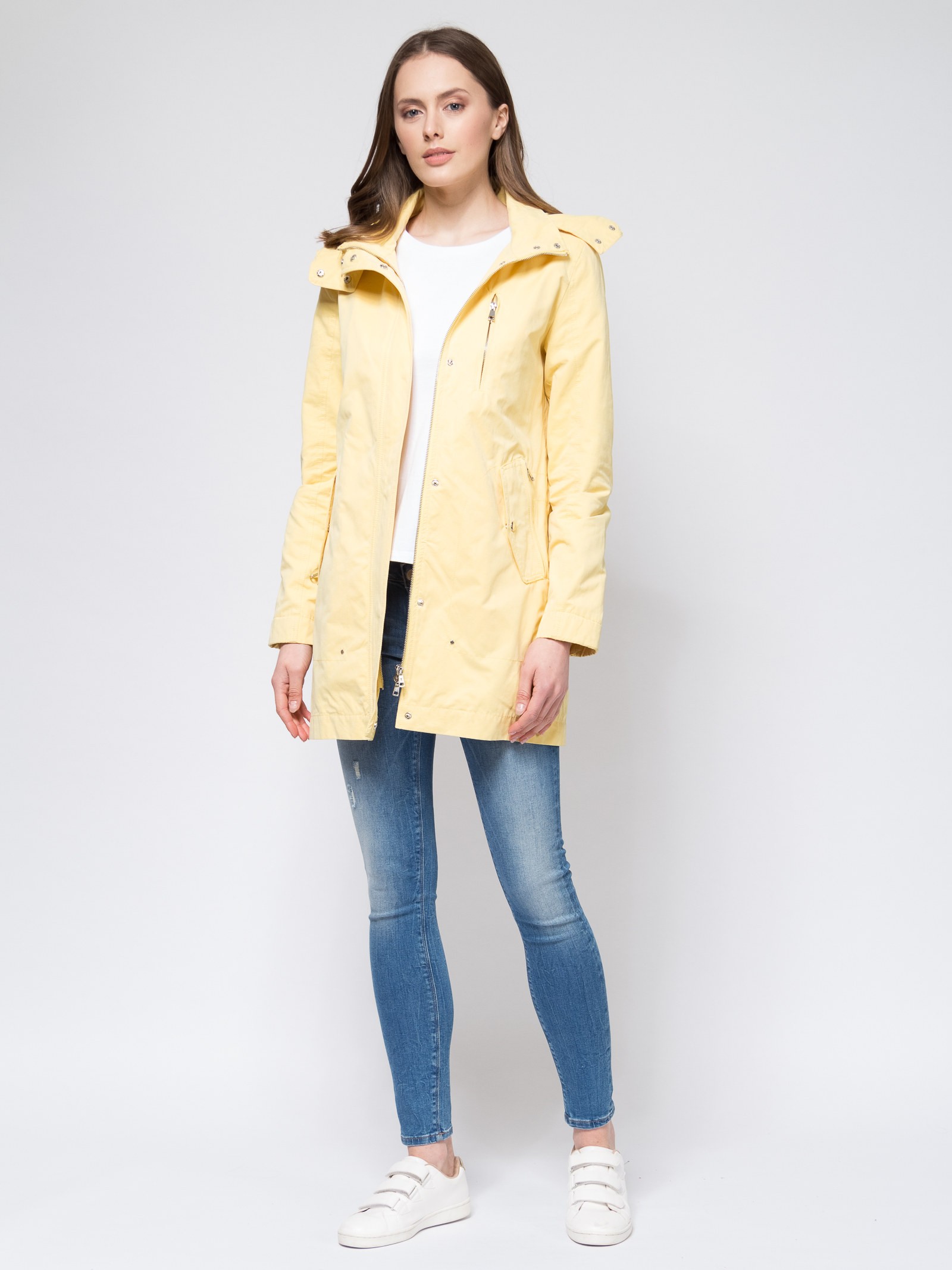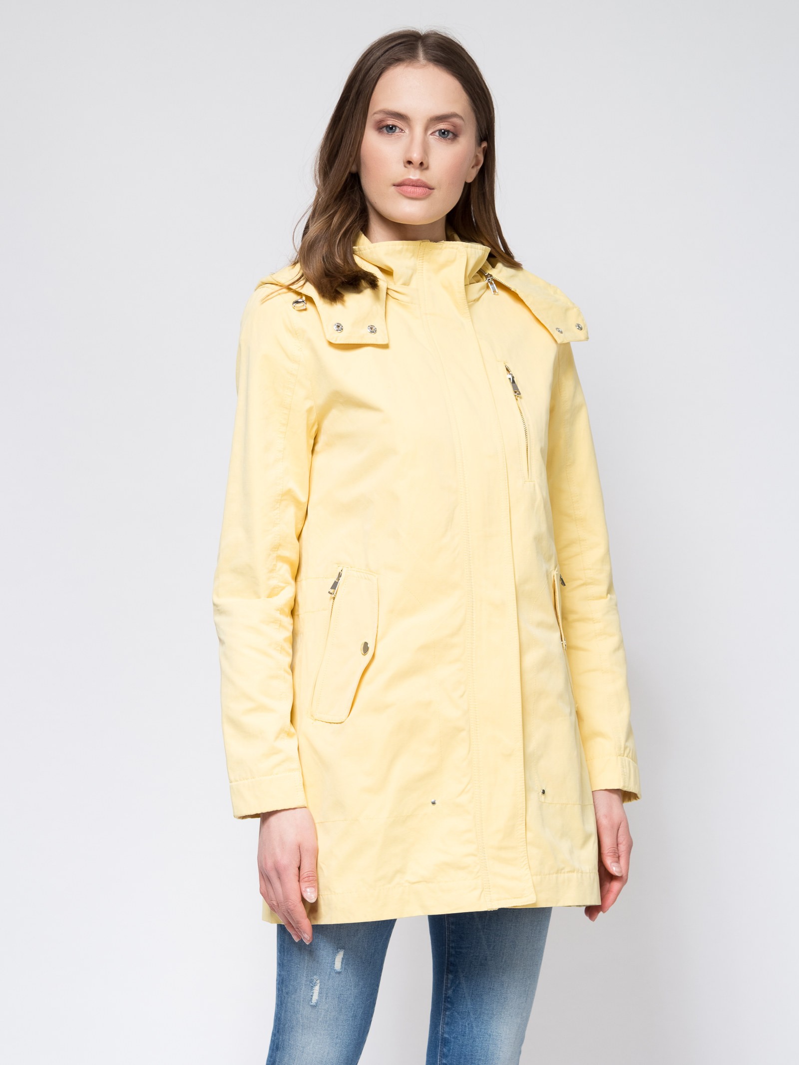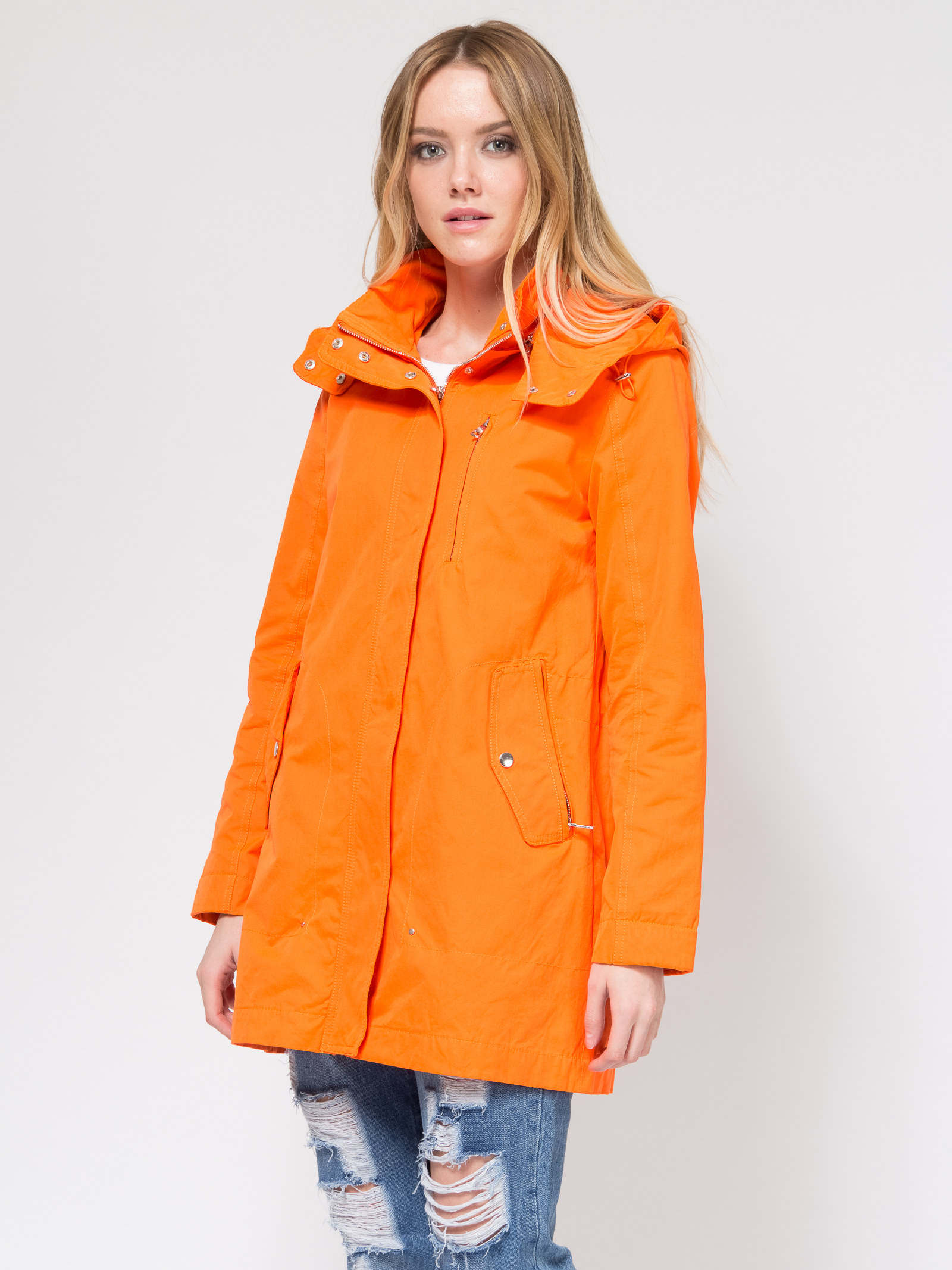 Молодежная ветровка полуприлегающего силуэта с внутренней кулиской. Капюшон отстегивающийся на молнии. Центральная застежка на широкую молнию и кнопки. На груди прорезной карман на молнии, по бокам прорезные карманы с клапаном на кнопках и декоративной отстрочкой с заклепками. Плащ в атуальных, ярких цветах.