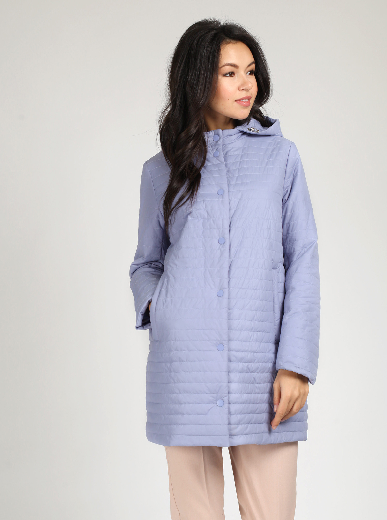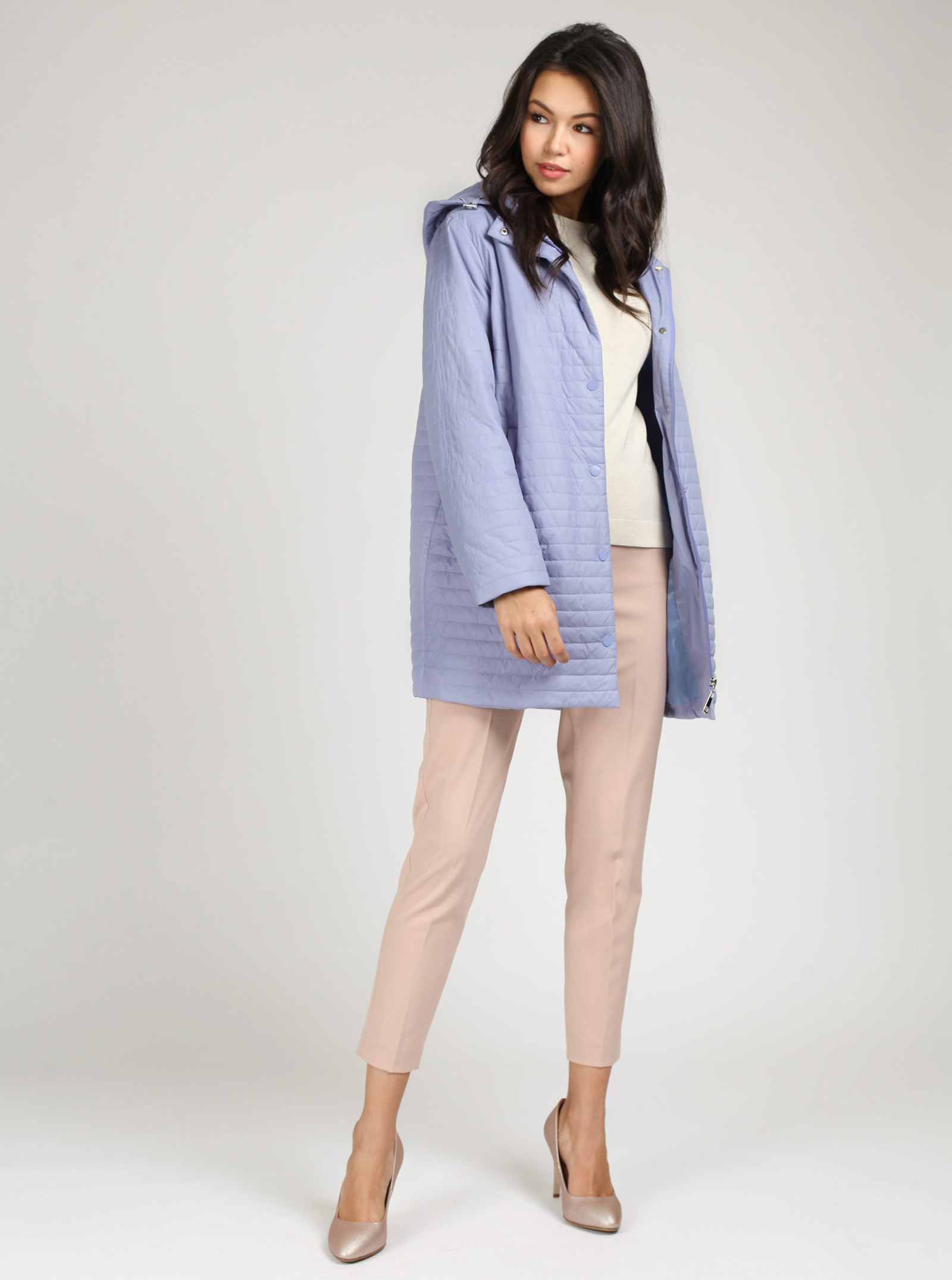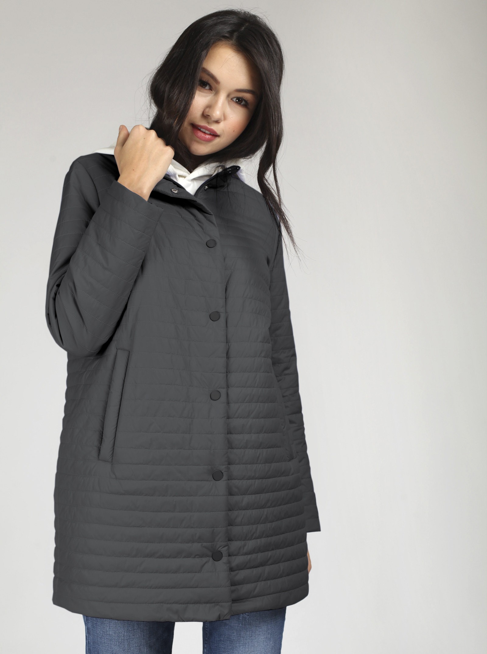 Куртка прямого кроя свободного силуэта - для прохладной погоды. Модель изготовлена из прочной и приятной на ощупь ткани с гипоаллергенным наполнителем из синтепона и декорирована необычной горизонтальной стежкой. Куртка застегивается на потайную молнию и кнопки в тон изделия. Модель дополнена боковыми врезными карманами на молнии и съемным капюшоном. Куртка прекрасно сочетается с джинсами, платьями или юбками.