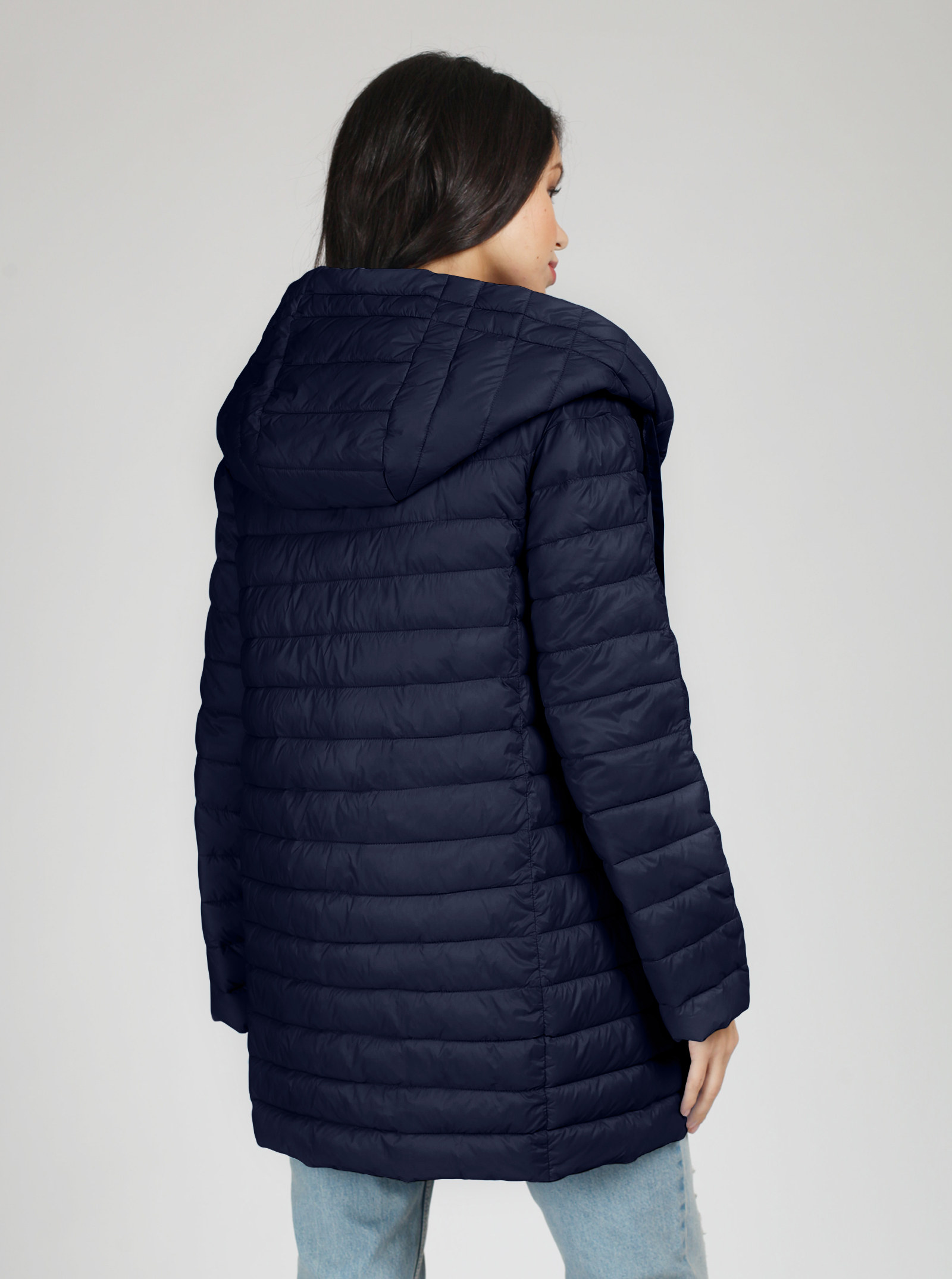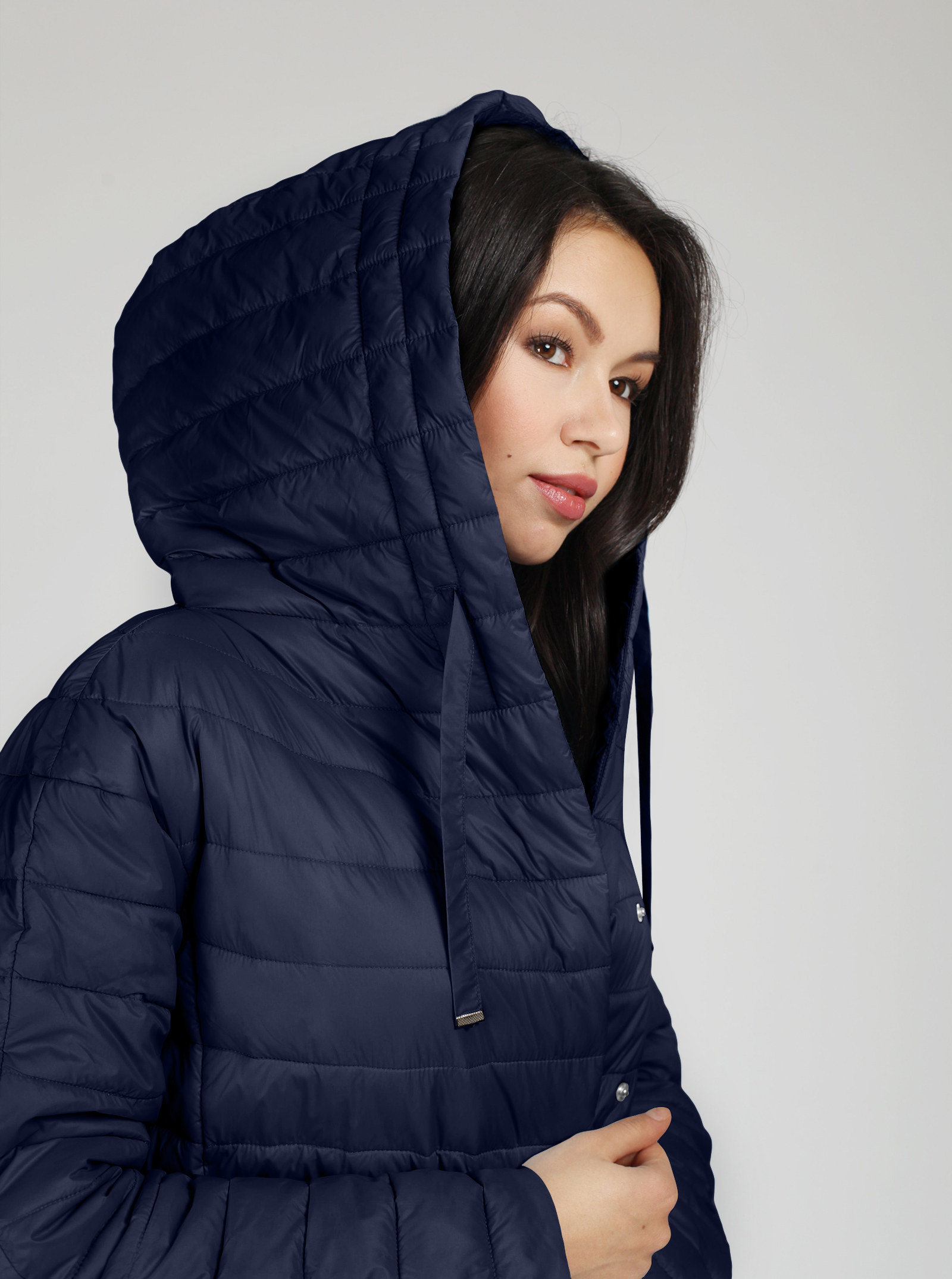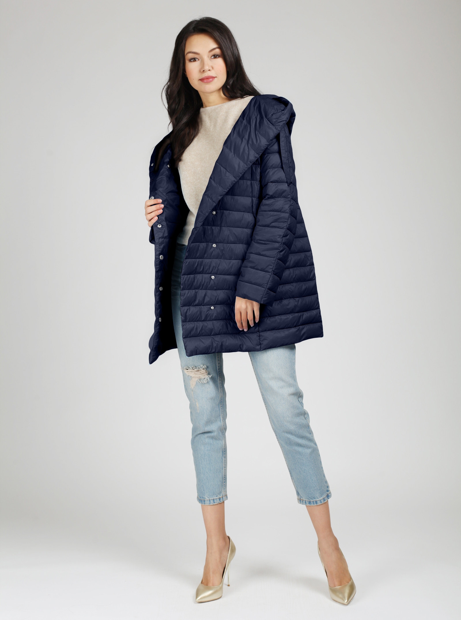 Пальто для ранней весны, выполненное из легких нейлоновых тканей(внутри и снаружи), которые использует компания Uniqlo для тонких пуховиков Внутри слоев ткани находится современный гипоаллергенный наполнитель, который заменяет натуральный пух, но по своим свойствам не уступает ему. Пальто - невероятно легкое, его можно компактно сложить, если погодные условия будут в течение дня меняться. Это была основная цель, к которой мы стремились, создавая его.