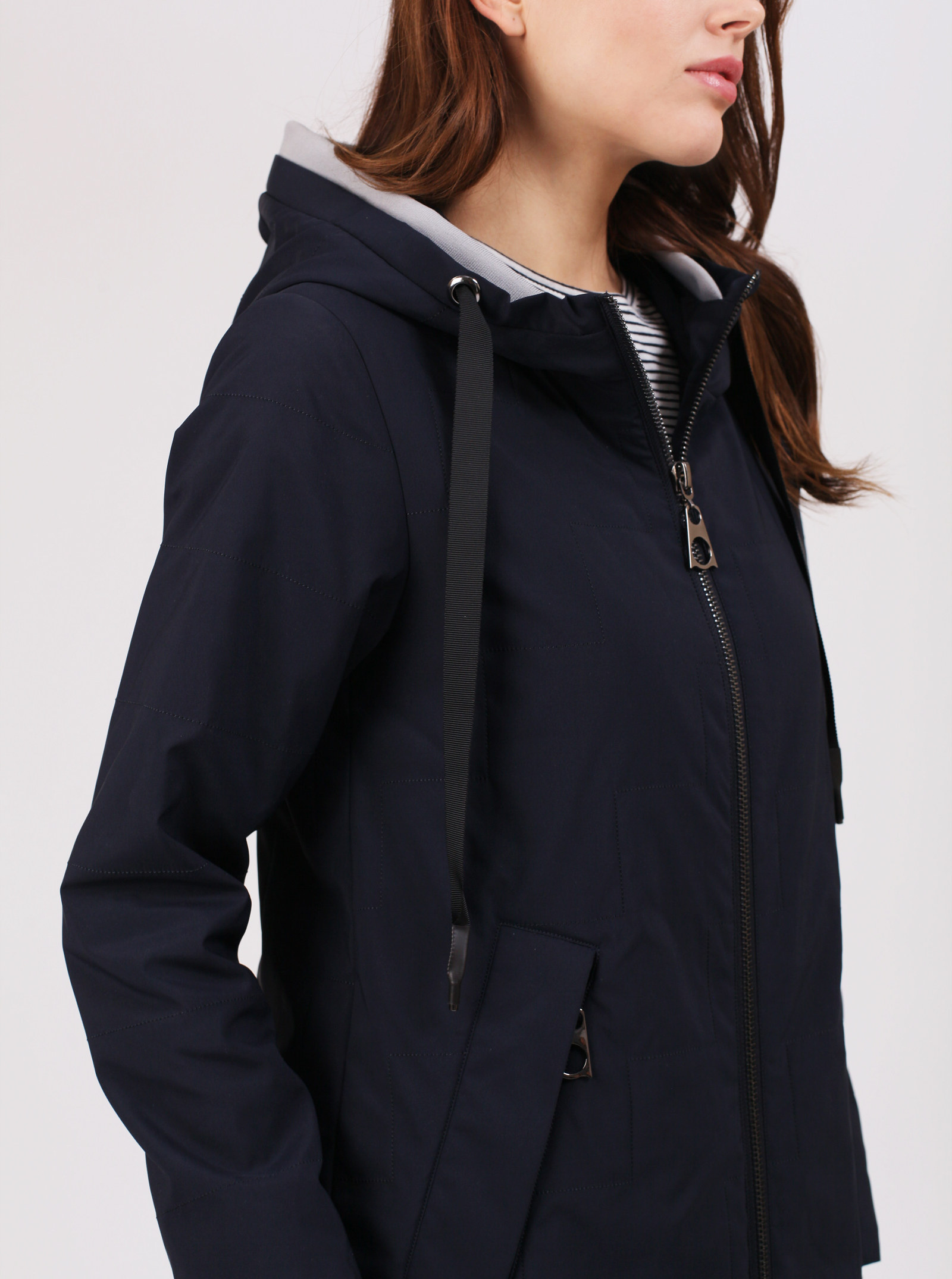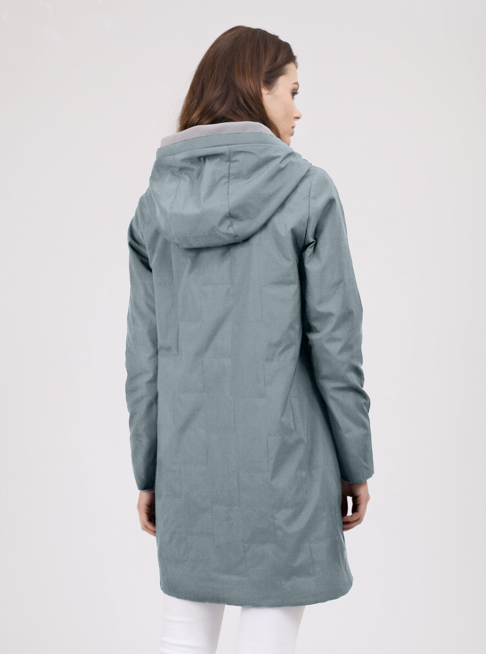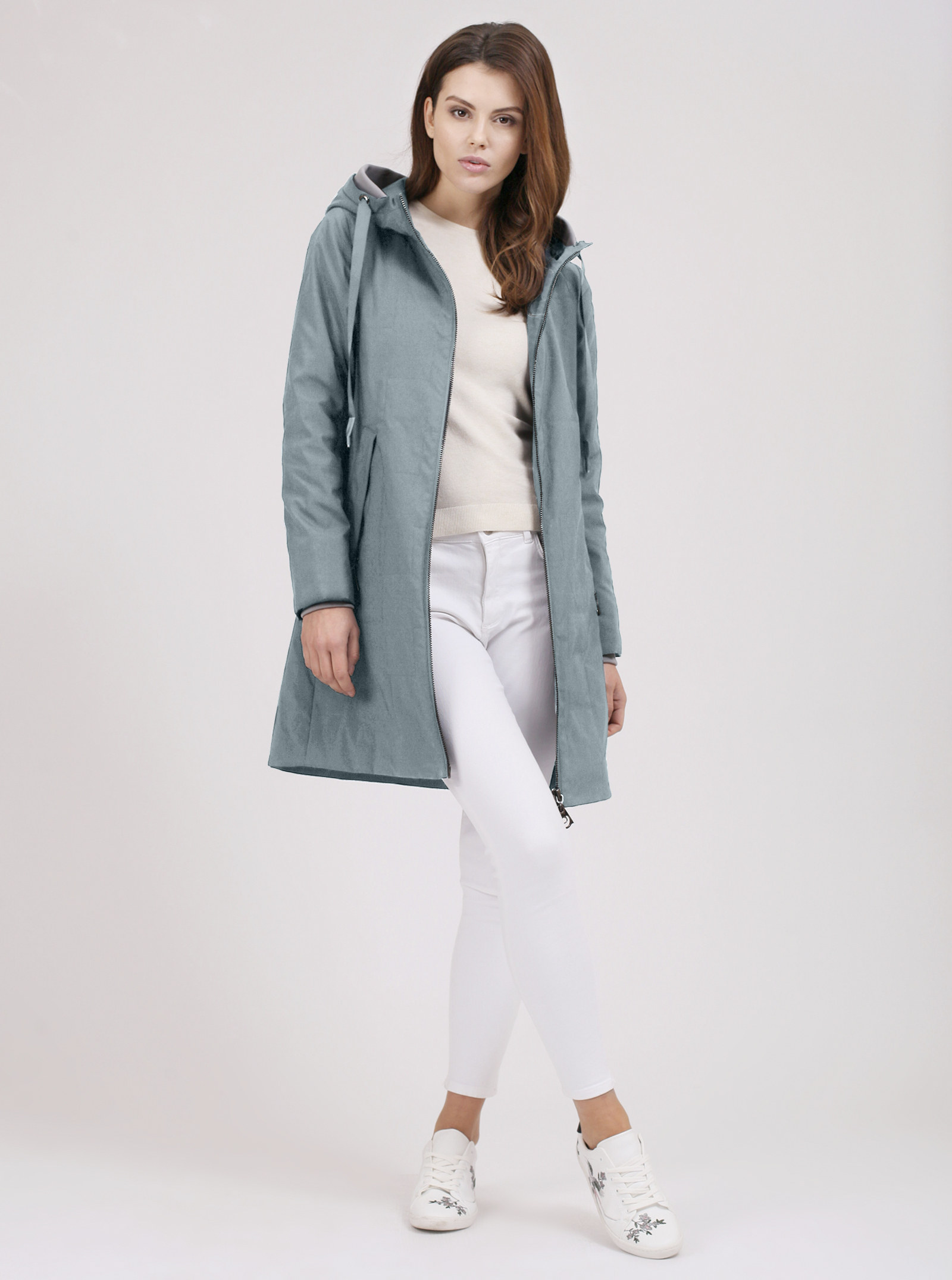 Пальто удлиненное, с цельнокроеным капюшоном, простегано нестандартной формой стежки -зиг заг на тонком гипоаллергенном наполнителе. По низу рукавов и по внутренней части капюшона находится трикотажная резинка контрастного цвета. Подкладка пальто имеет такой же цвет как и верх изделия прекрасно гармонирует и завершает образ. Очень стильно выглядит вся металлофурнитура: блестящий ее цвет и крупные формы выделяют это изделие из подобного ряда, отделка к тому же функциональная: вы можете затянуть шнуры по низу изделия и стянуть ленты капюшона и тем самым не дать возможности ветру проникнуть внутрь.