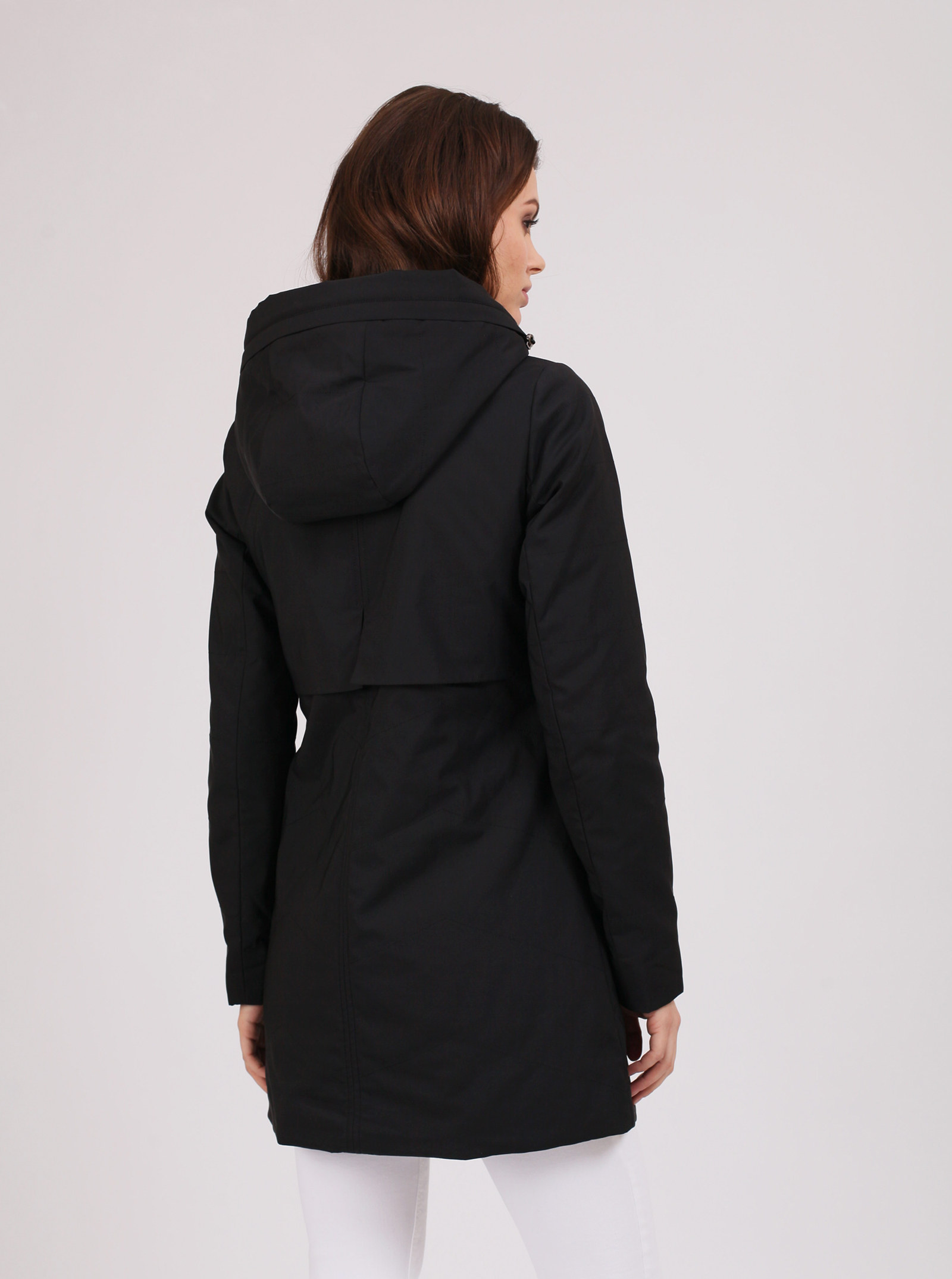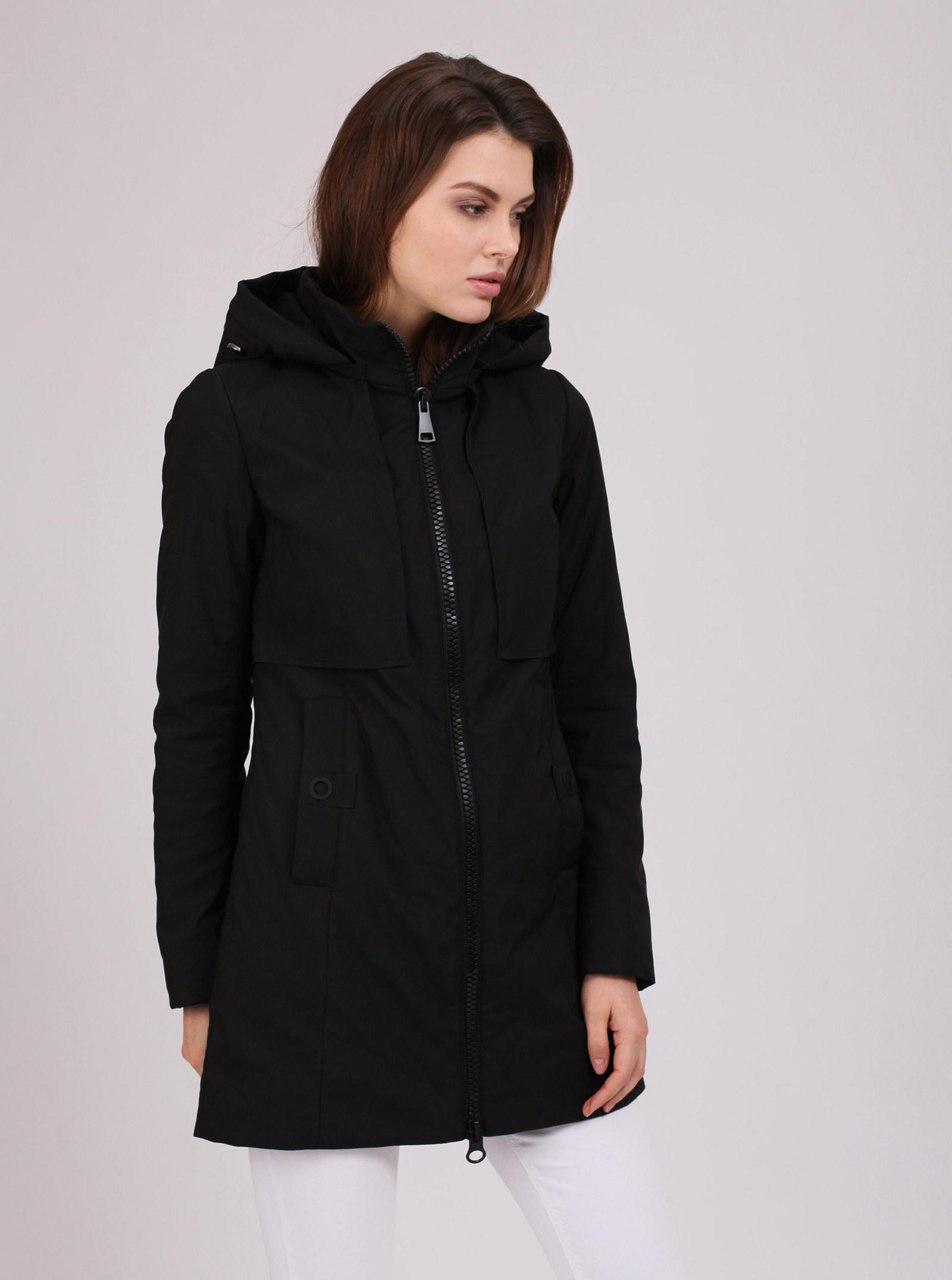 Пальто утепленное прямого силуэта с отлетными кокетками по спинке и переду. Капюшон съемный, его прилегание к лицу фиксируется шнуром при помощи стопперов. Такая же фиксация предусмотрена и для низа изделия. Застежка пальто на молнию, кроме функциональной роли так же выполняет и декоративную. Она имеет крупные зубья и пиллерсы, что очень актуально на данный момент. Яркая, насыщенная подкладка, очень освежает изделие и его вид изнутри. Вас порадует также и наличие внутреннего кармана на молнии.