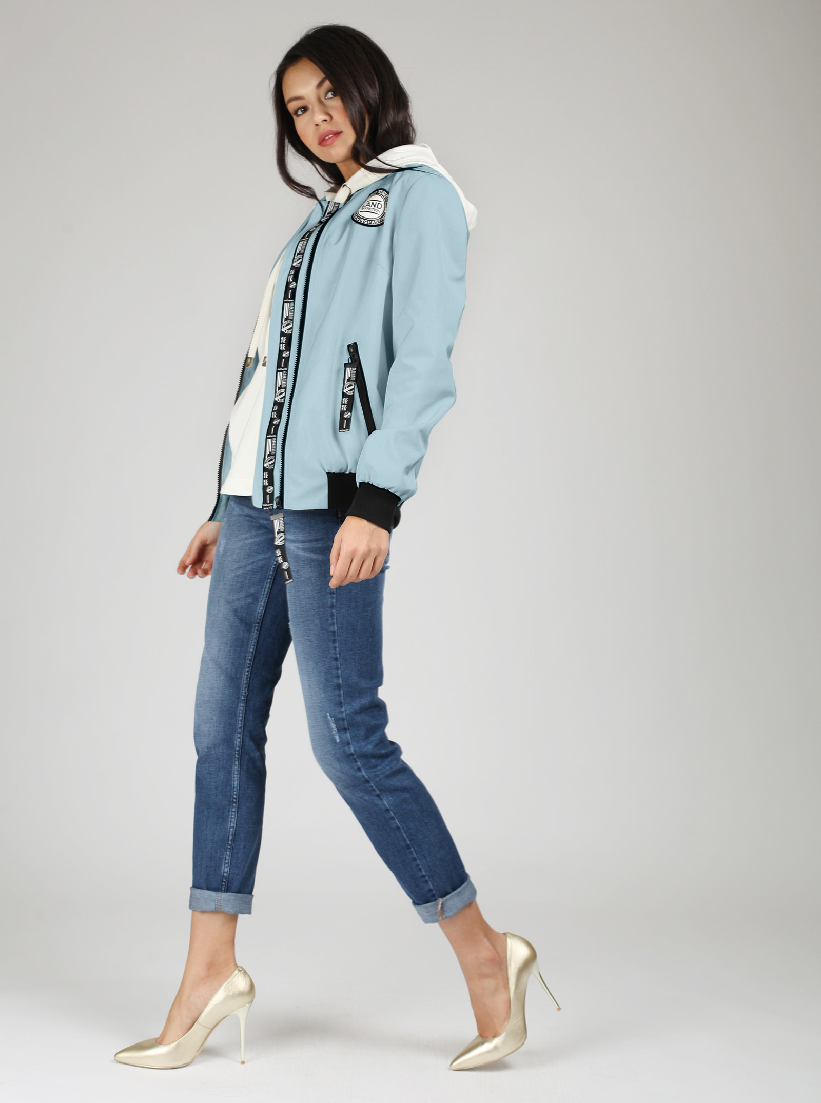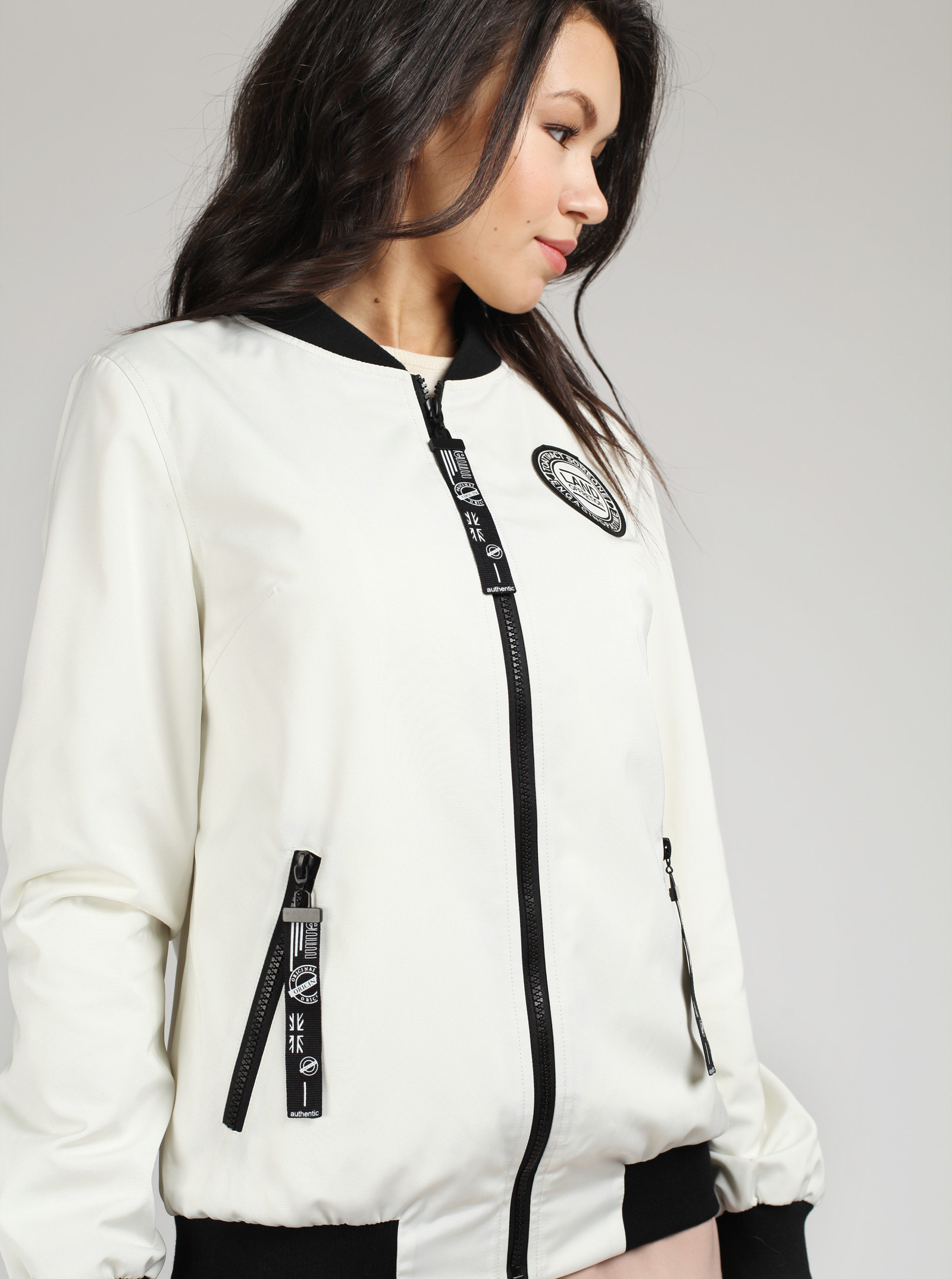 Куртка-бомбер выполнена из износостойкого быстросохнущего текстиля. Модель прямого кроя. Контрастная застежка на молнию с внутренней ветрозащитной планкой. Воротник, манжеты и низ изделия оформлены трикотажем в рубчик контрастного цвета. Фронтальные врезные карманы на молнии и декоративные нашивки добавляют изделию нотку динамичности и спортивного шика.