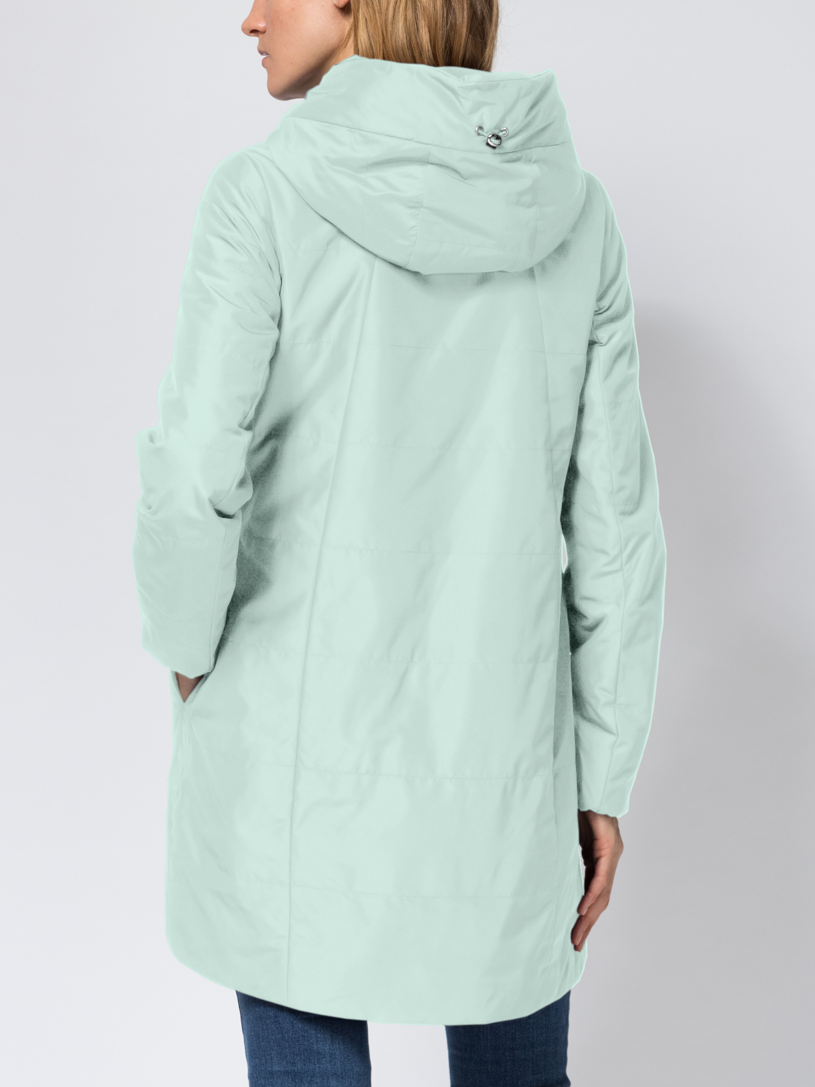 Ультрамодное утепленное пальто ментолового цвета – элегантное и очень красивое. О-образный силуэт с укороченным низом спереди – изюминка модели. Вещь также декорирована интересными накладными карманами по бокам. Есть капюшон на кулиске, застегивается пальто на широкую молнию. Нежный ментоловый оттенок порадует глаз и разнообразит серые будни. Пальто станет отличным выбором для работы и личных встреч. Куда бы вы его не надели, вы будете выглядеть эффектно и элегантно.